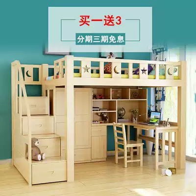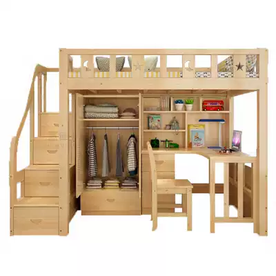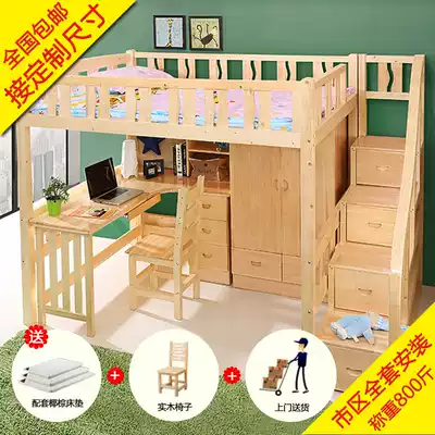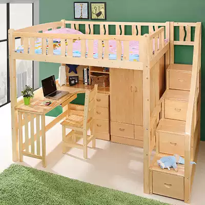 Small apartment solid wood raised bed desk combination bed multi-functional student children's bed bed bed table adult wardrobe bed