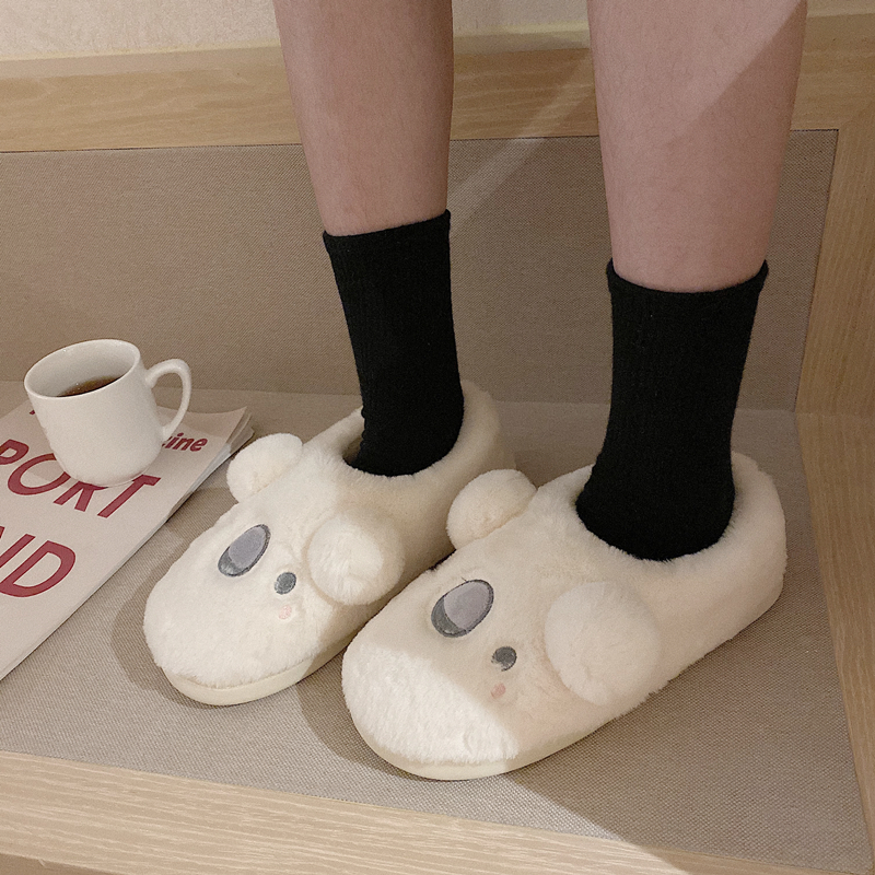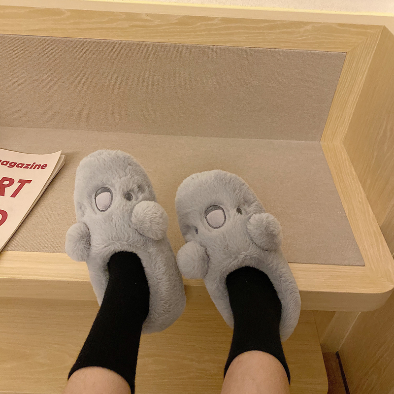 Korean Version Cotton Slippers Winter Home Indoor Cute Cartoon Non-slip Warm Moon Sub Full Bag Heel Plush Cotton Slippers Woman