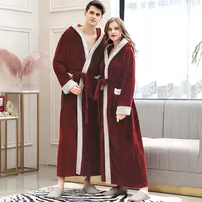 Nightgown female winter coral velvet thickened men's flannel bathrobe long version plus velvet couple sexy pajamas autumn and winter