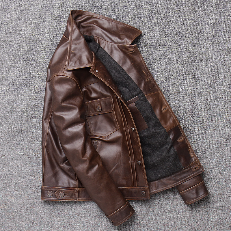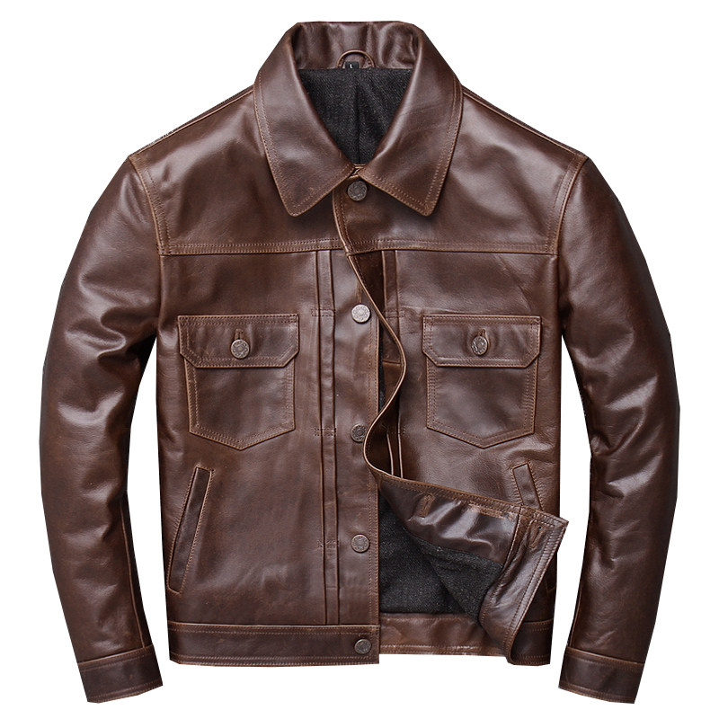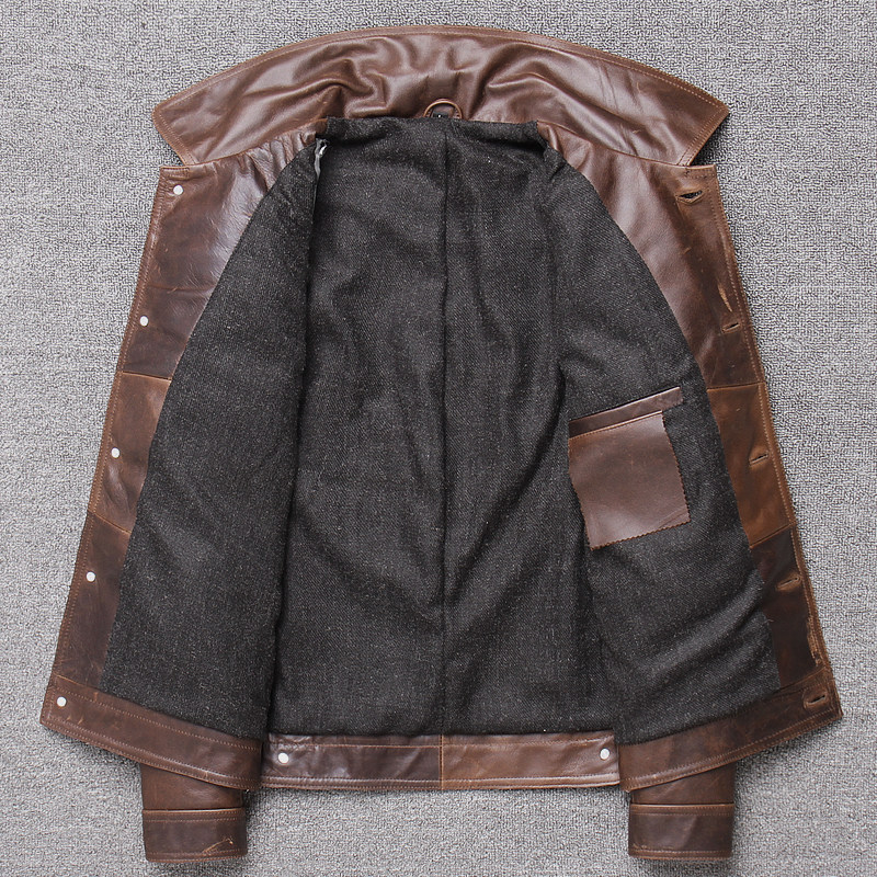 Henning Genuine Leather Leather Clothing Male head layer Bull Leather Jacket Short locomotive leather clothes Men's Han prints Body Autumn Jacket Turnover