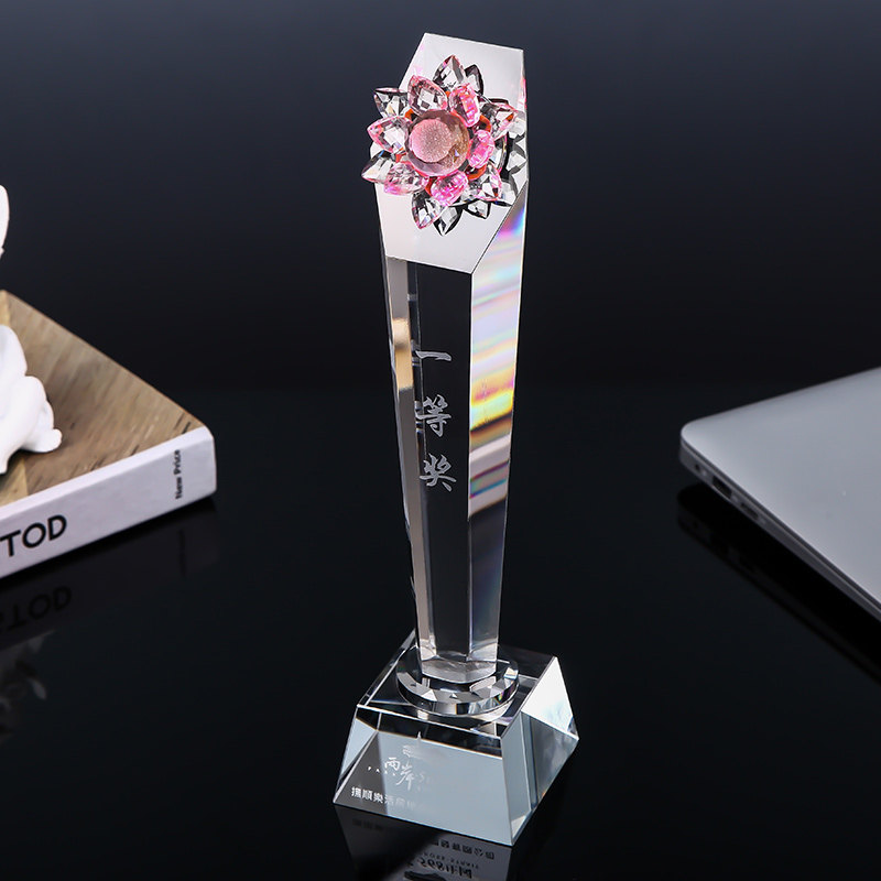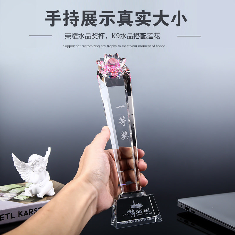 New Crystal Trophy Customised To Dazzle Colorful Lotus Trophy Medal Making Enterprise Employee Event Memorabilia