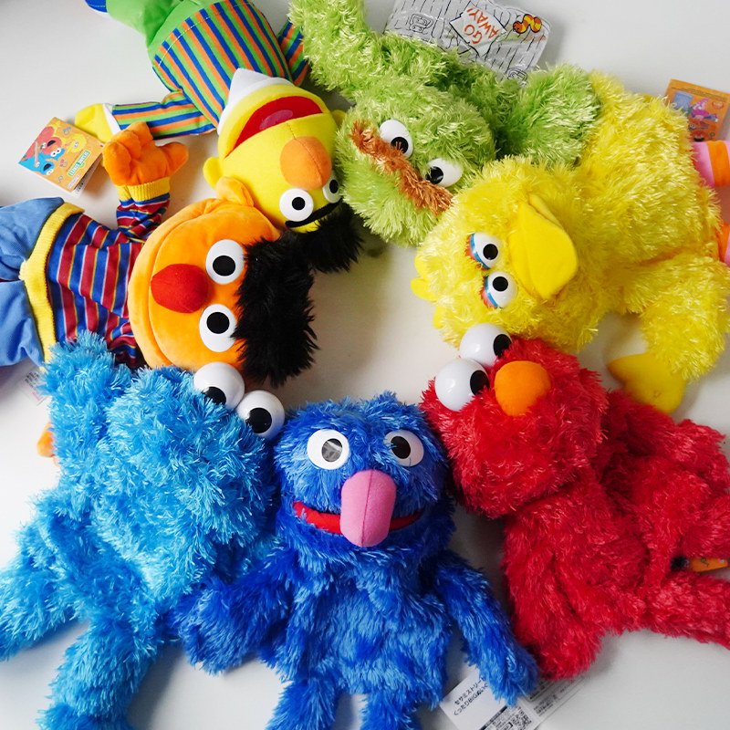 Light yellow A blue va hand puppet B red va hand puppet C dark blue va hand occasionally D green bin hand puppet E yellow bird hand puppet F male paparazzi occasionally G girl hands occasionally Zoe paparazzi yellow bird paparazzi yellow bird paparazzi green trash can