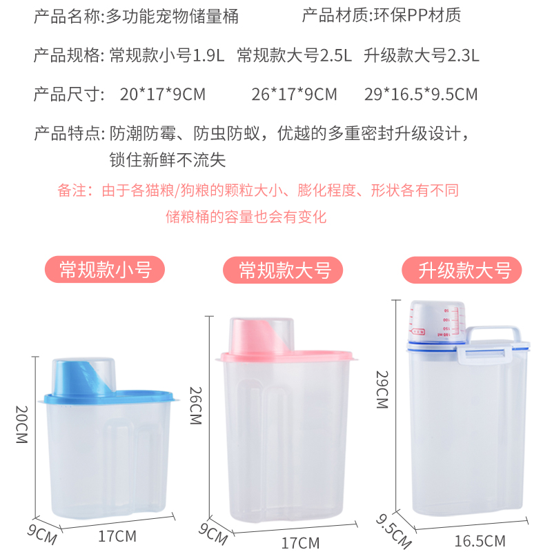 Dog food Cat food storage bucket Sealed moisture-proof Dog food bucket Grain storage box Storage tank container Pet food storage box