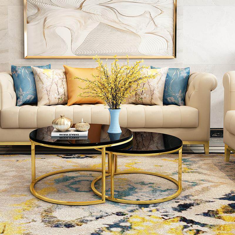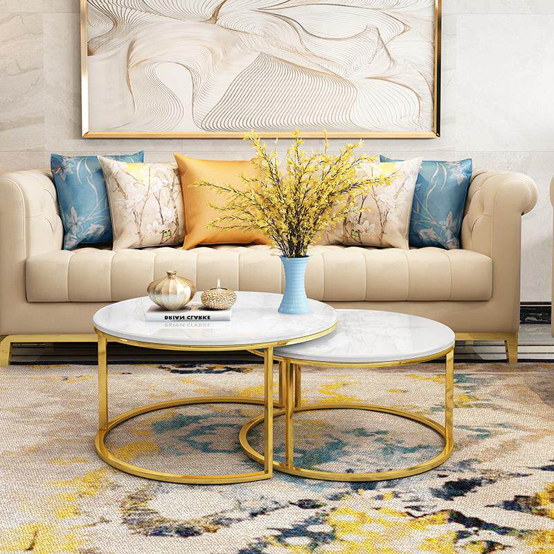 Medium flower white marble surface coffee table combination Black silver dragon marble surface coffee table combination