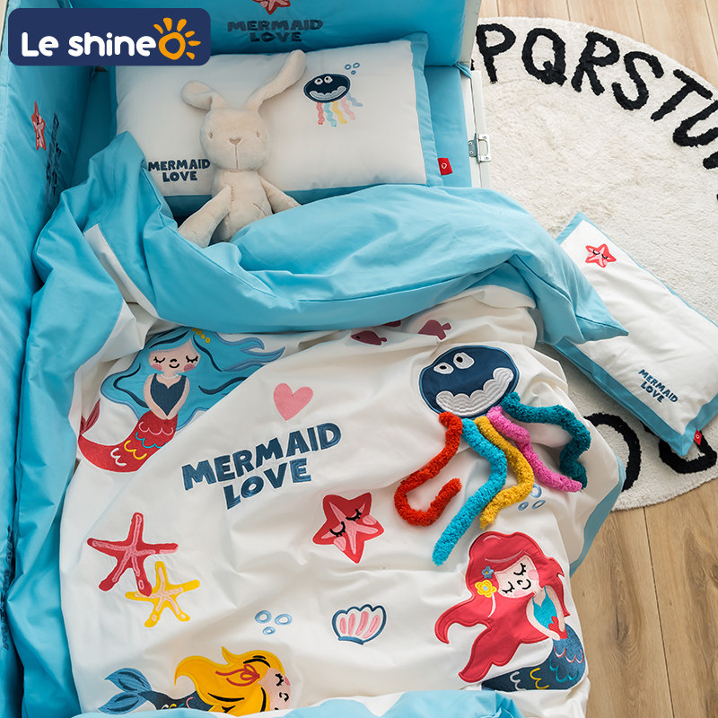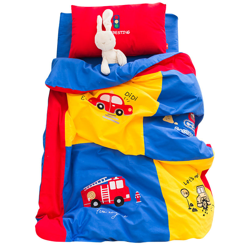 Lanfu children's kindergarten three-piece set of cotton sanding high and low bed bedding 1m1 2 meter parent-child series four-piece set