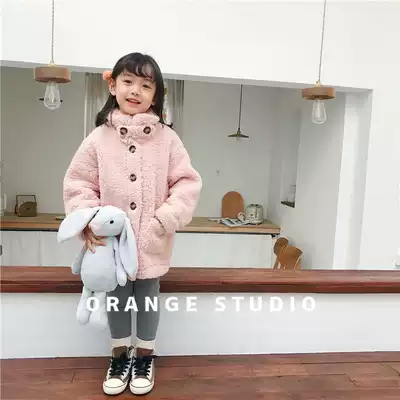 Orange children's clothing Korean winter New Girl pink lamb fur coat