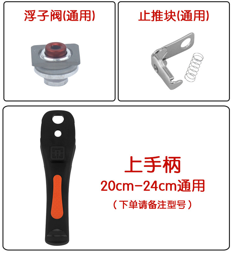 Sealing ring (lower single remark size) 20-24 upper handle (universal regardless of pot size) lower handle (universal regardless of pot size) secondary handle (universal regardless of pot size) pressure limiting valve (through