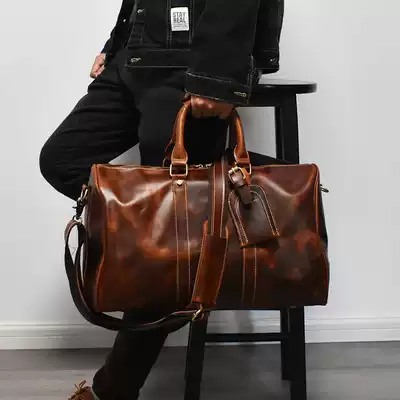 Vintage large capacity Men's handbag bag handmade Crazy Horse leather men's bag shoulder shoulder bag leather travel luggage bag