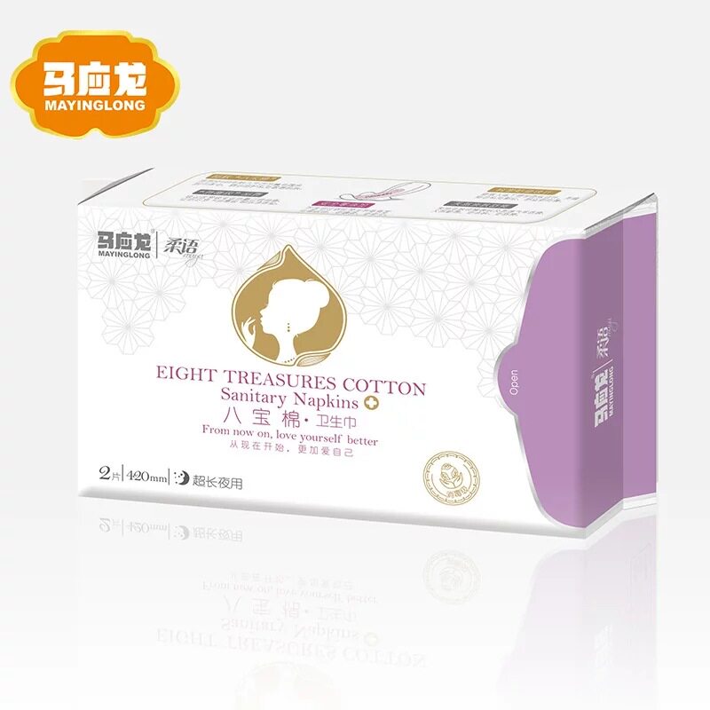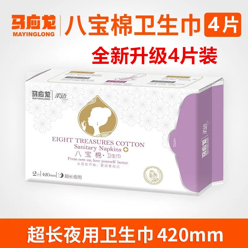 Ma Yinglong sanitary napkin 420mm super long night with aunt towel female strong absorption cotton soft anti-side leakage skin-friendly anti-allergic