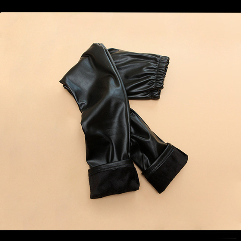 Girls' leather pants autumn and winter 2022 new middle and big children's foreign style tight-fitting plus velvet thickened PU leggings pants for outerwear
