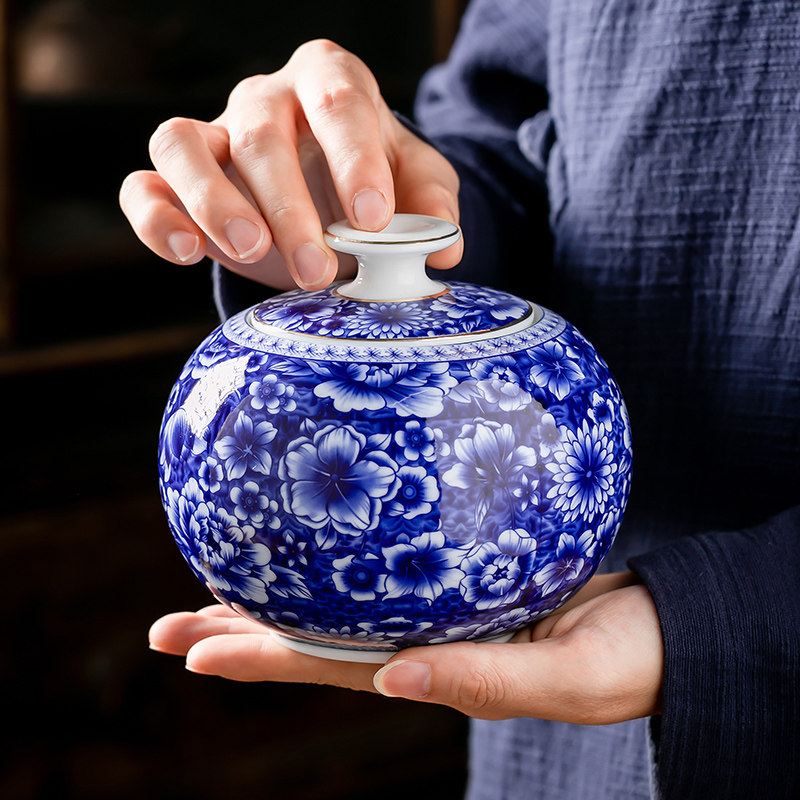 Blue and white porcelain flowers blooming wealthy single cans Blue and white porcelain blooming wealthy double cans gift box