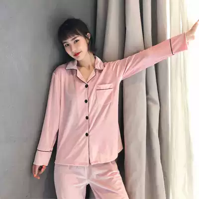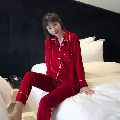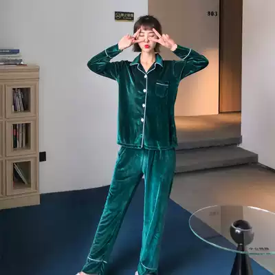 Golden velvet pajamas women's autumn and winter thin Korean version of fresh student Net red cute suit can be worn outside home clothes
