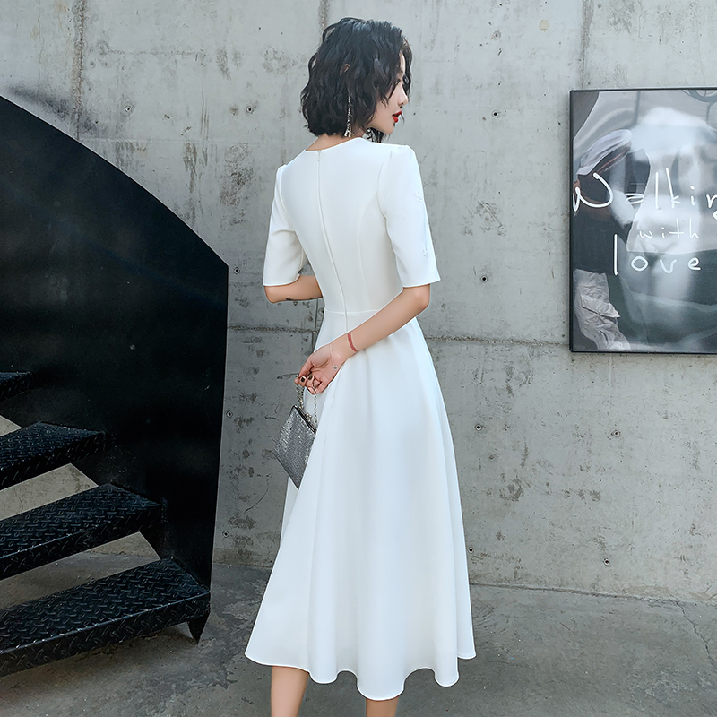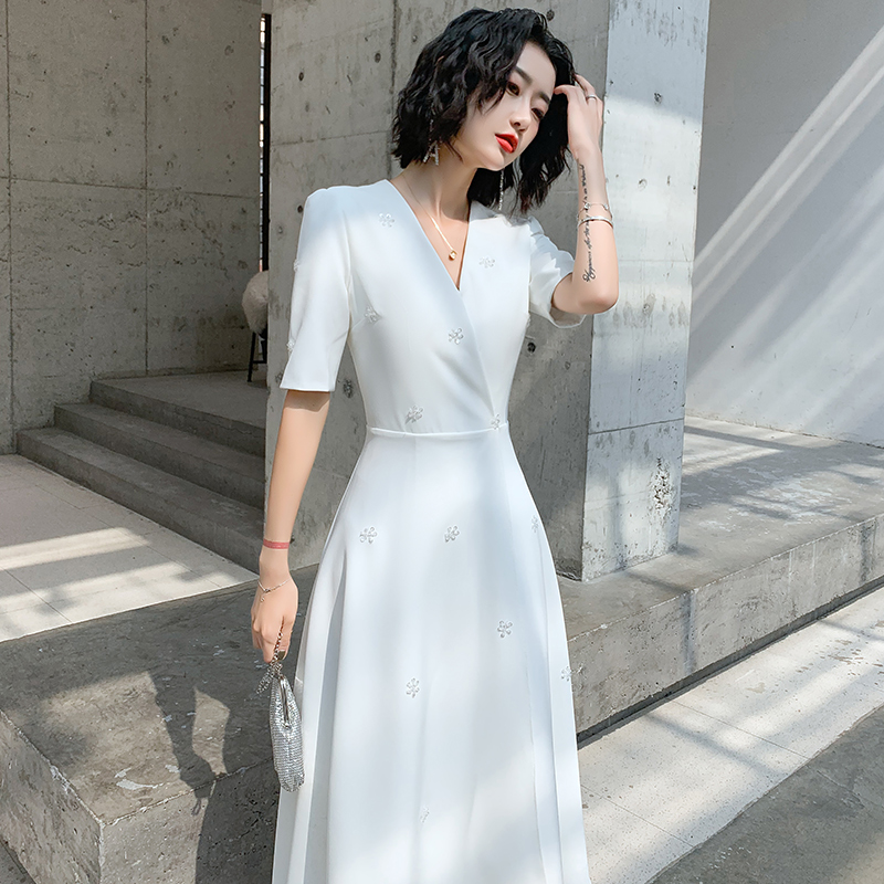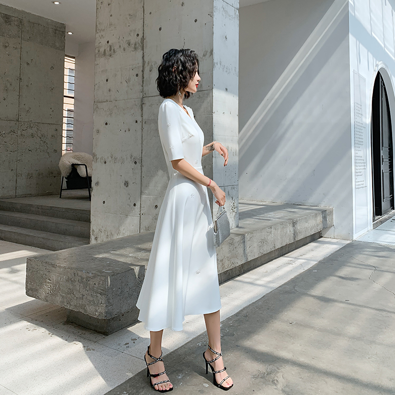 White dress new V-collar elegant French dress dress can usually wear banquet dress