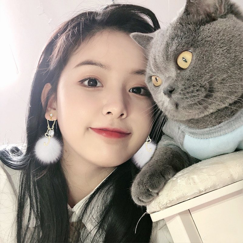 Cute kitty wool ball ear clip without earrings for women earrings 2022 new Korean temperament net red spring and summer ear decoration