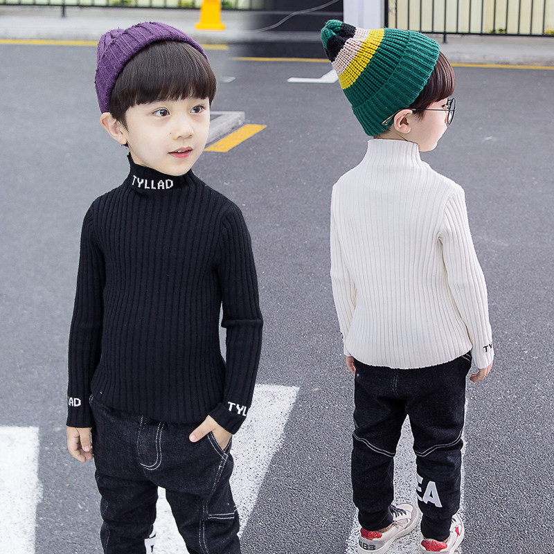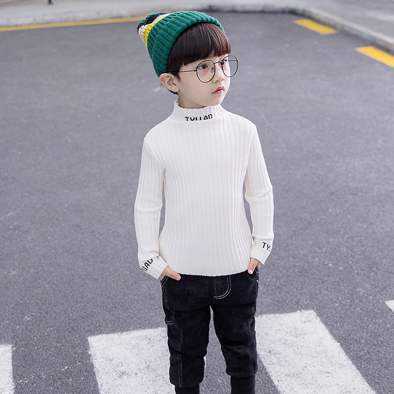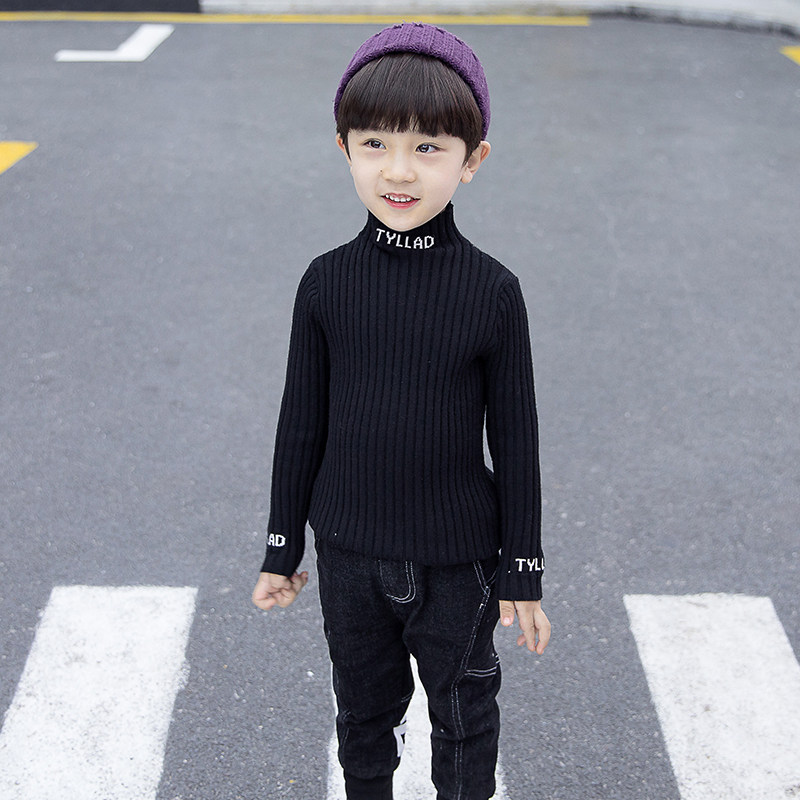 Boy fall sweater jacket head knitted sweatshirt autumn and winter style Children's male baby boomers half-high collar bottom-shirt boy