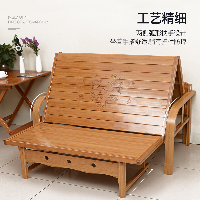 Folding sofa bed Sofa Bed Dual-use double room Multi-function Small family Type Home 1 5 m solid wood Bamboo bed
