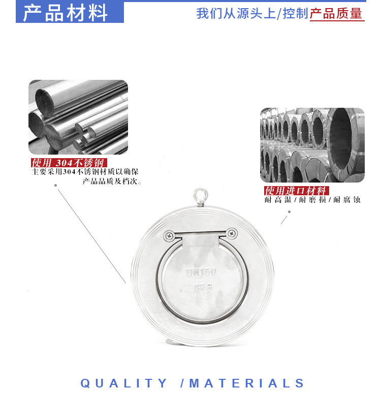 H74W-16P Check Valve Thin 304 Stainless Steel Water Pipe Wafer Check Check Valve Butterfly 316DN5080