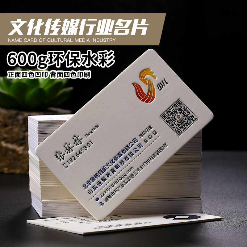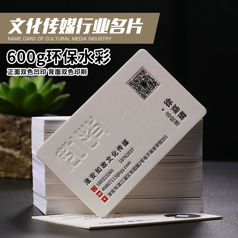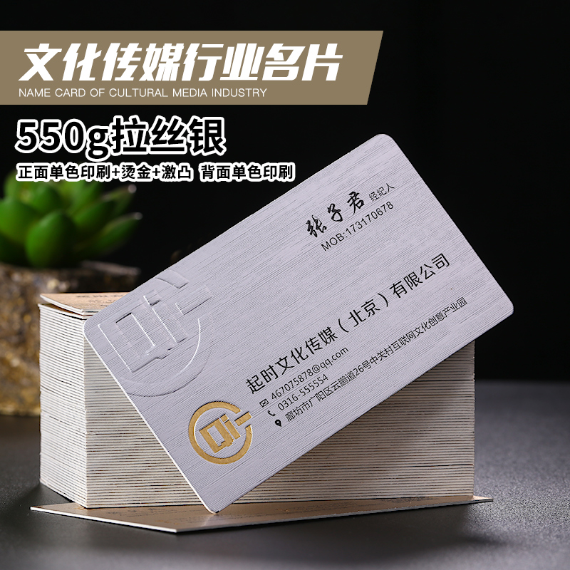 Culture media company business card set production creative design high-grade thickened cotton special paper concave and convex stamping business card silver relief business card advertising company graphic shop counterpart processing