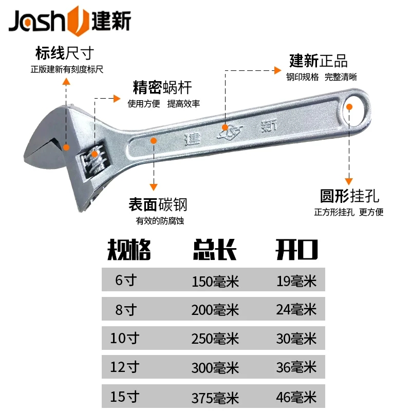 New activity wrench 8 inch 10 inch 12 inch 24 inch large opening adjustable wrench multifunctional maintenance 5 gold tool