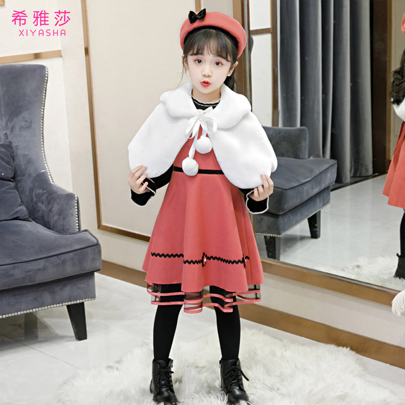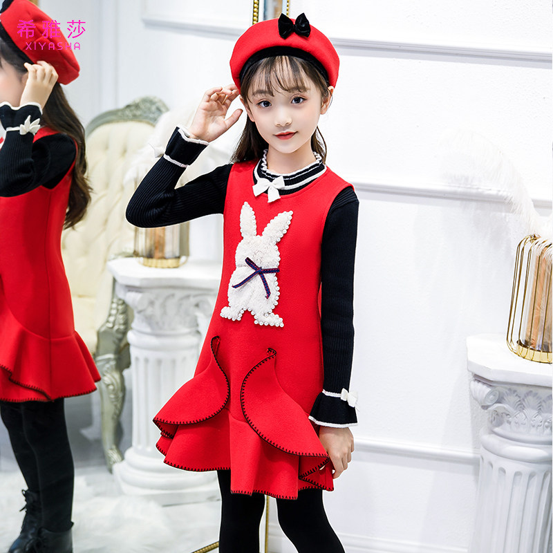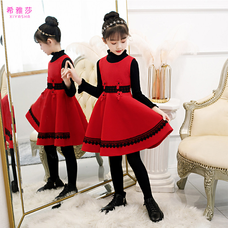 Children's Ocean Dress New Year Clothes Winter Dress 2022 New Sweater Girl Skirt Hair Princess Dresses Red Suit