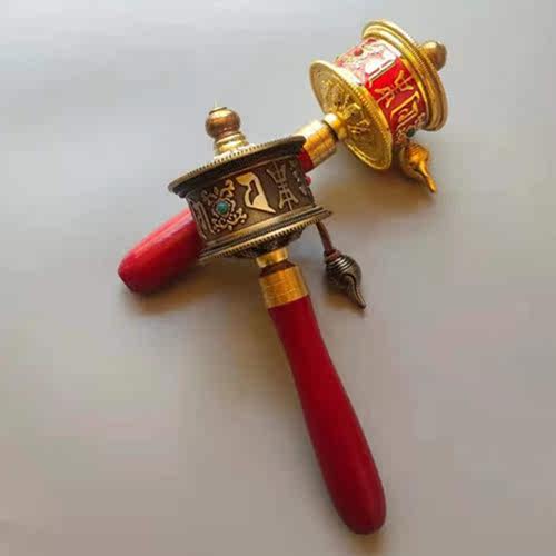 Tibetan Six-Character Mantra Prayer Wheel Hand Cranked Prayer Wheel Pure Metal Tantric Dharma Instrument Lhasa Shipment