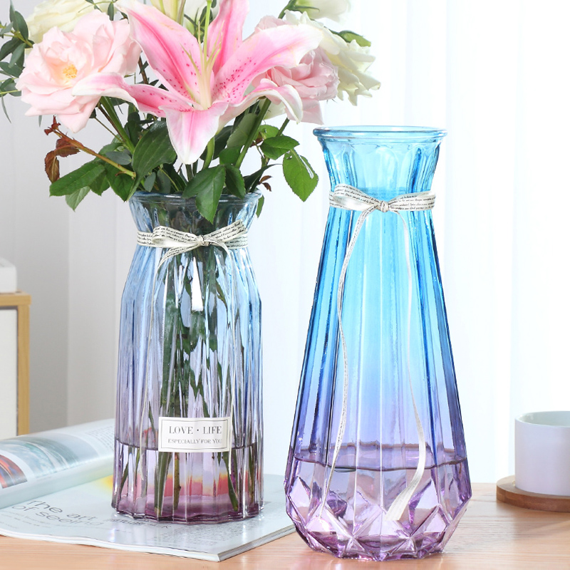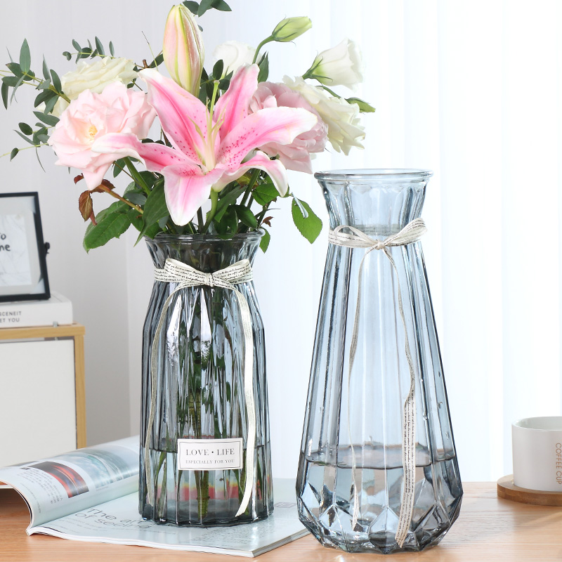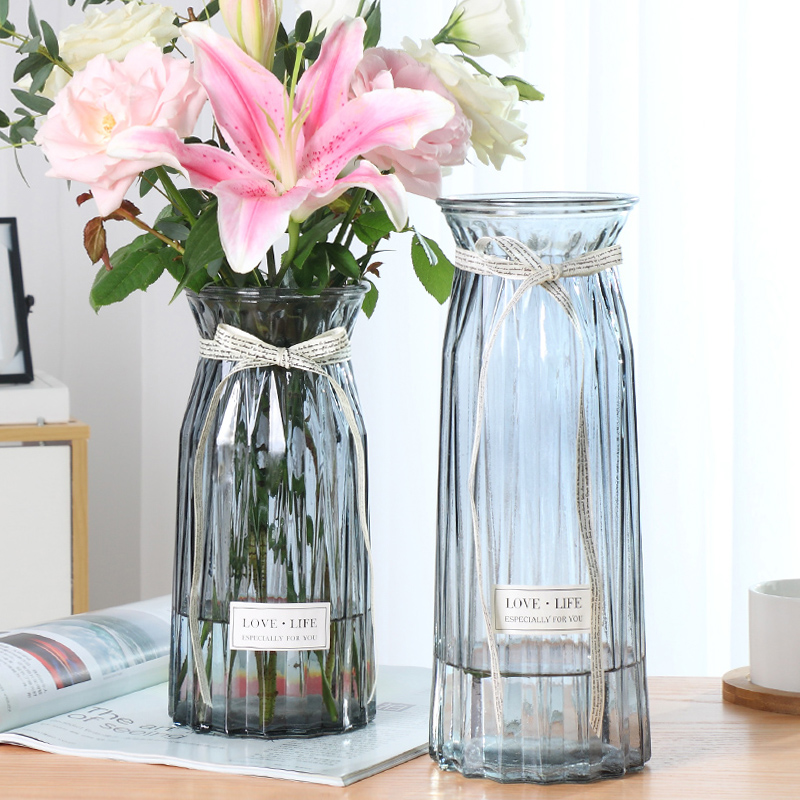 (Extra Large Two-piece Set) Glass Vase Transparent Hydroponic Lily Lucky Bamboo Vase Living Room Flower Arrangement Ornament