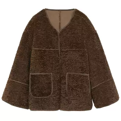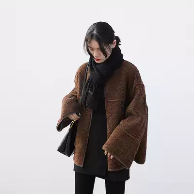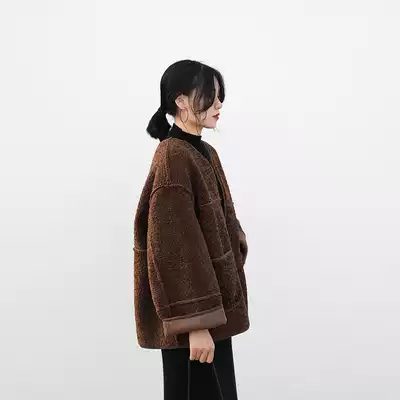 CHICVEN winter imitation lamb wool cardigan small temperament warm fur one-piece coat top short female