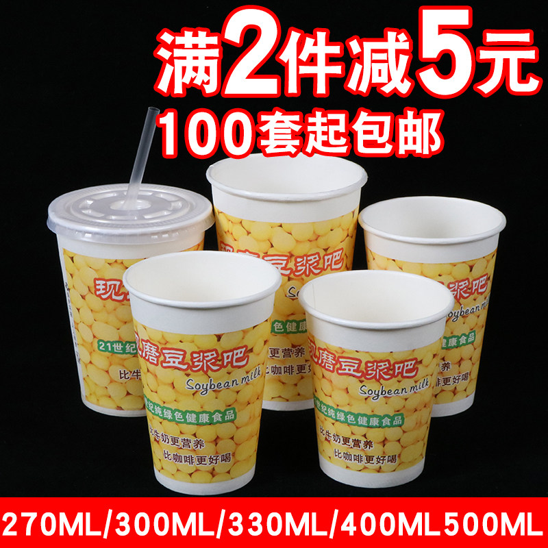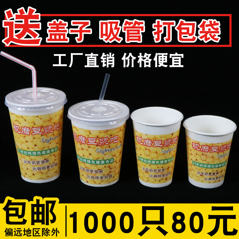 Soymilk cup Disposable with lid Freshly ground thickened soymilk cup Paper cup Commercial straw Packing cup Take-away full set