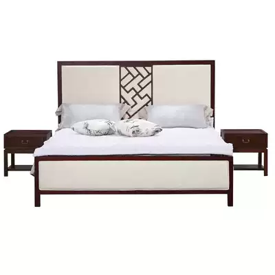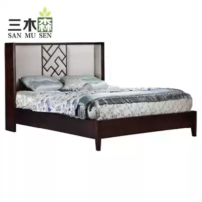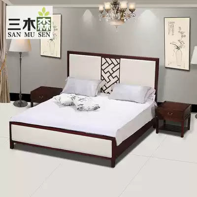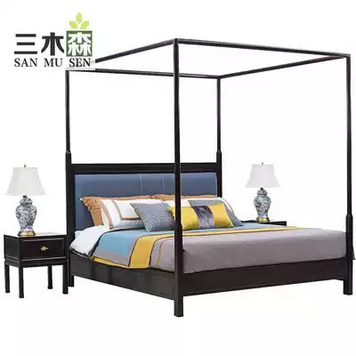 New Chinese solid wood double bed modern Hotel Villa Model Room 1 5 1 8m fabric shelf bed four-pillar custom