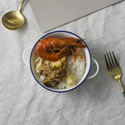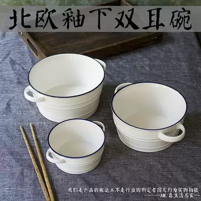 Deep Blue Side 4 75 inch double ear bowl 400ML dark blue side 6 7 inch double ear bowl 1000ML Black Blue side 7 2 inch double ear bowl 1500ML blue black edge auspicious stew Cup