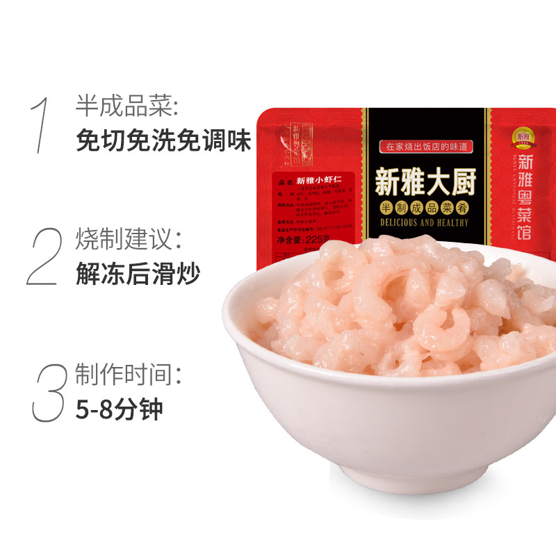 Shanghai Xinya Shrimp 225g*3 bags frozen semi-finished dishes freshwater river shrimp quick-frozen convenient dishes private room dishes