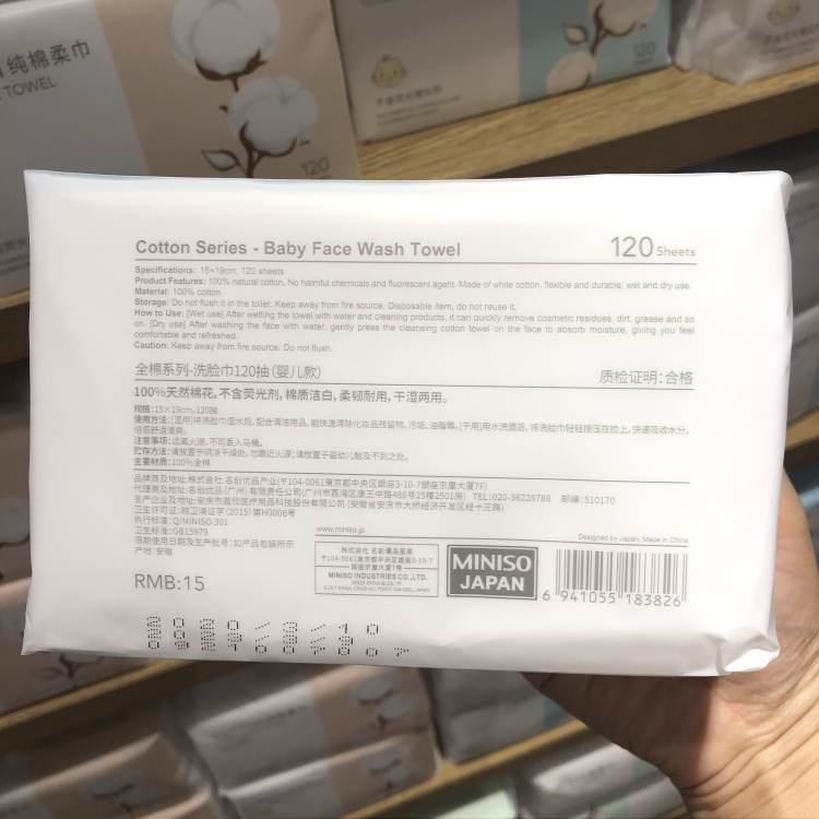 MINISO name Genesis All cotton series Baby cotton flexo wash face towels 120 pumping baby universal paper towel dry and wet