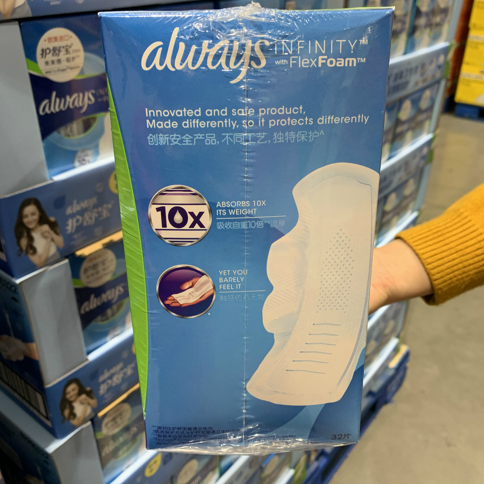 Shanghai costco protection shubao Europe imports Always Owiese liquid sanitary cotton daily 27cm64 sheet clothing