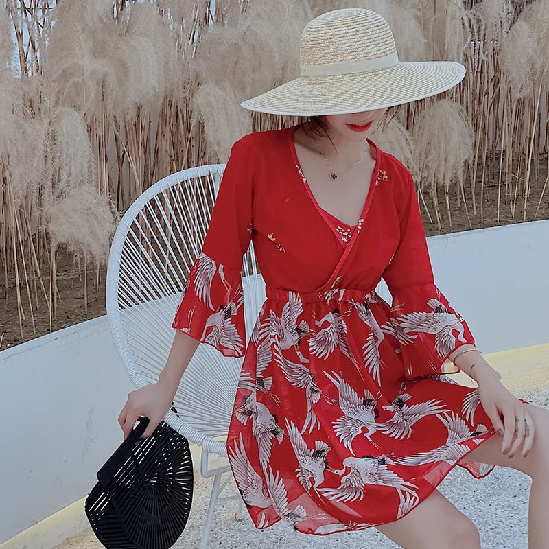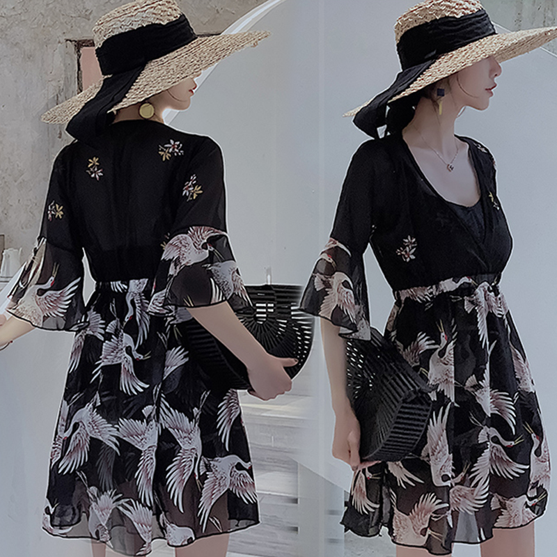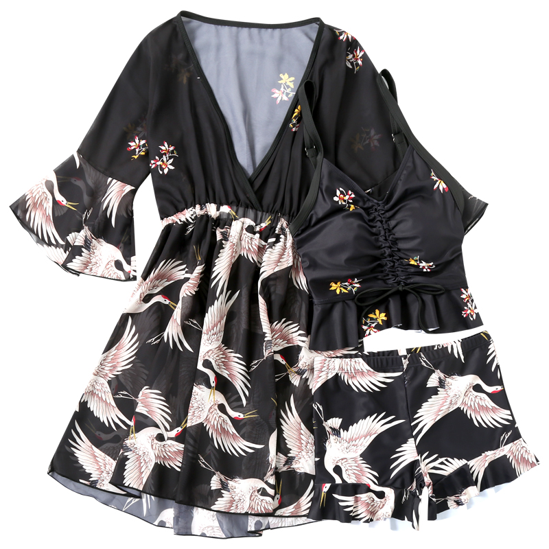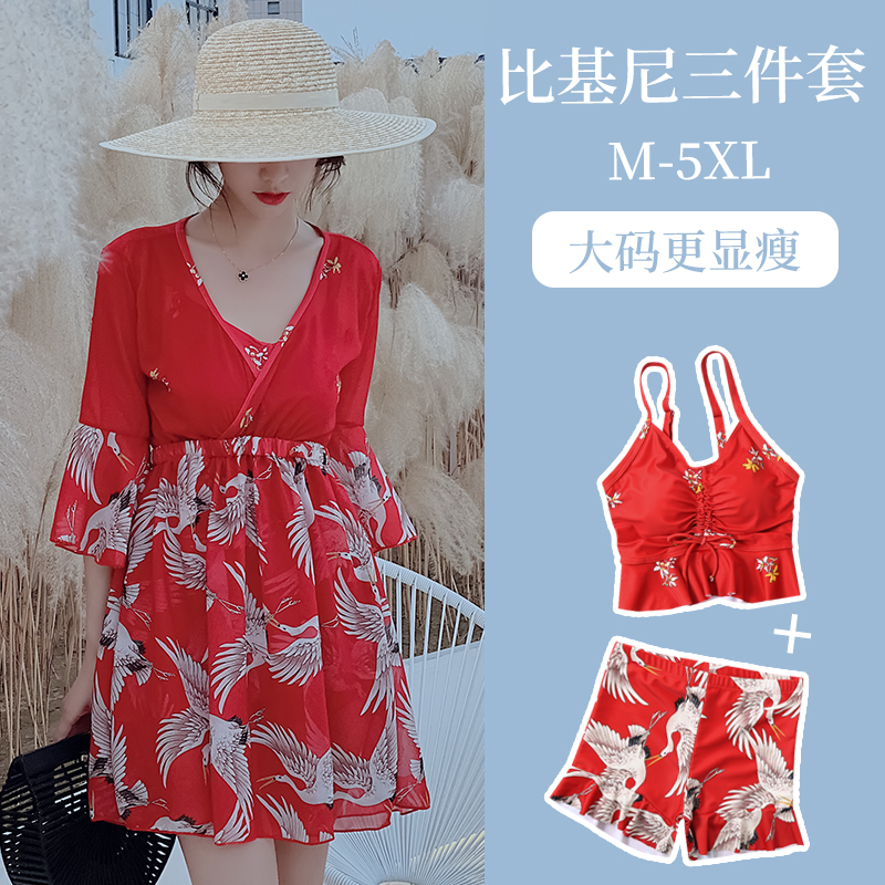 Large size swimsuit woman Three sets 200 catty grams of thin sexy big breasted bikini fat mm Belly Hot Spring Long Sleeve Hooded Sweatshirt