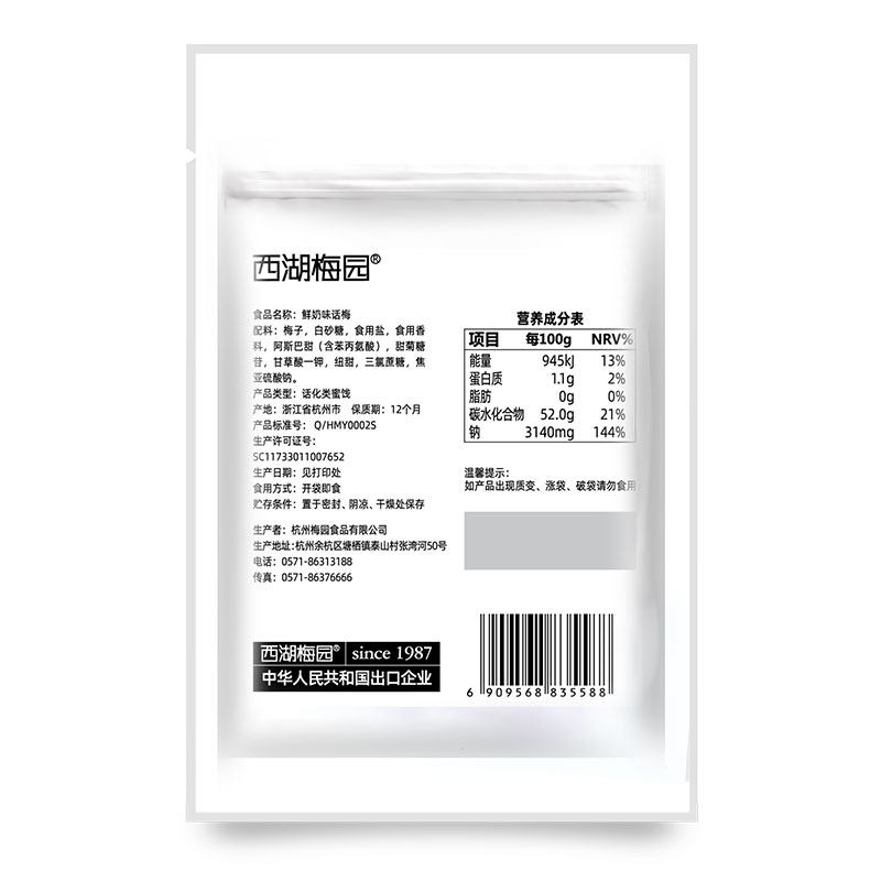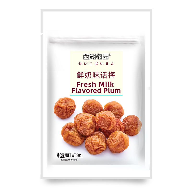 (West Lake Plum Garden) Fresh Milk Taste Words Plum Casual Snacks Sour Sweet Fruity Snacks Independent Small Package 60g