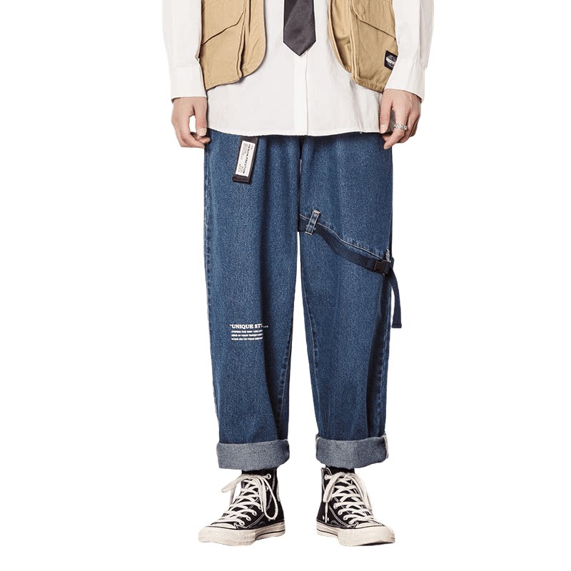 Fat Fat Dude Pants Man Spring Autumn New Loose Straight Barrel Broadlegged Blue Jeans Tide Cards Big Size Fat Sub 90% Pants