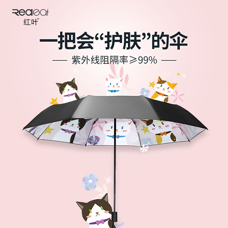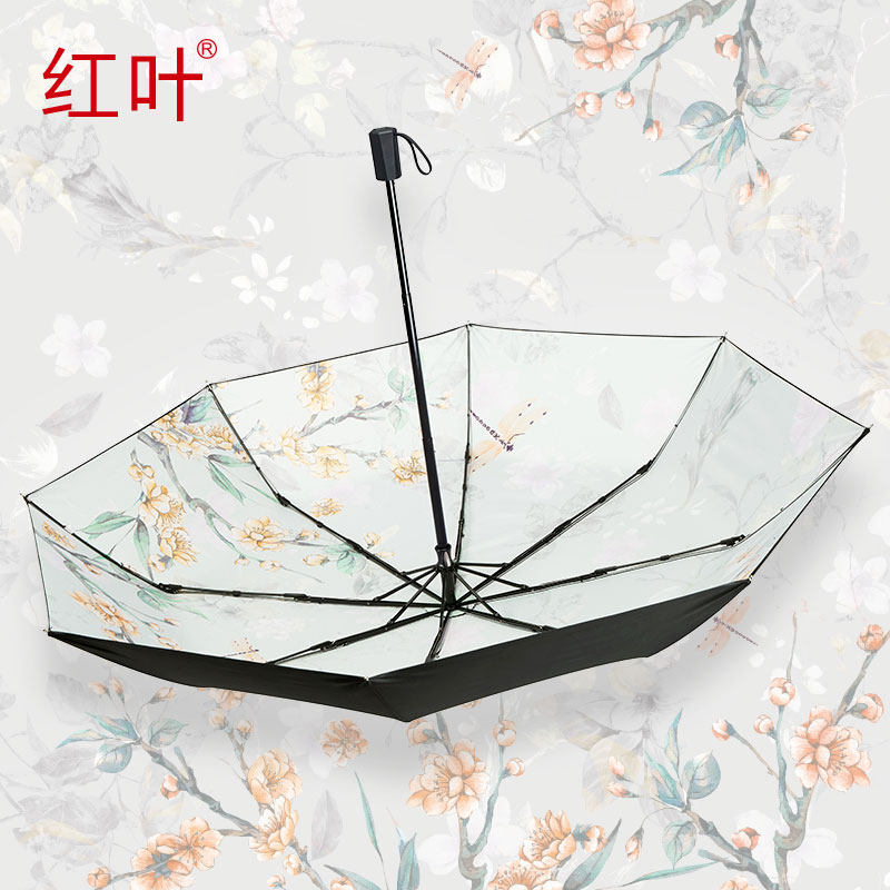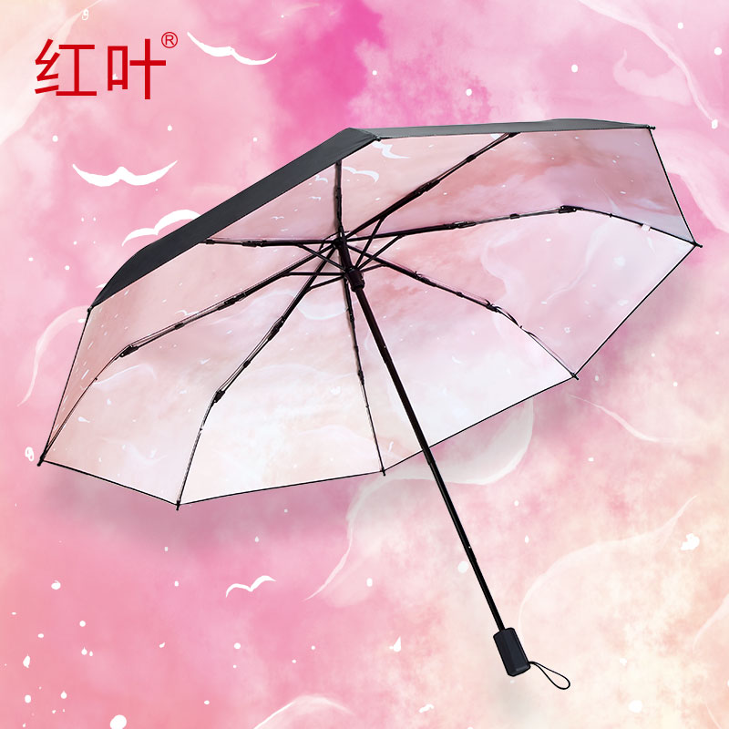Red-leaf shading umbrella black rubber sunscreen anti-UV shading umbrella ultra light small portable folding clear and rain dual-use umbrella female