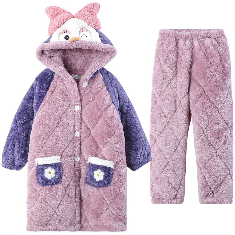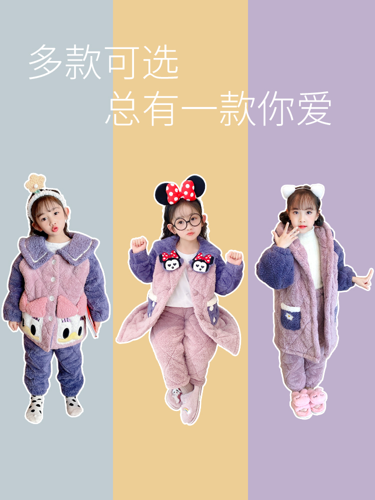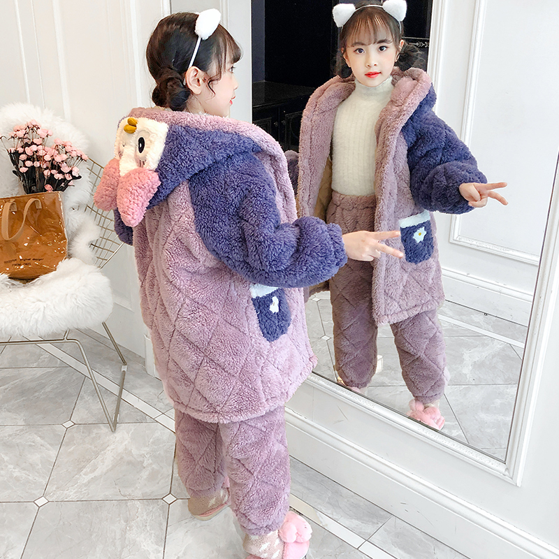 Children's pajamas Women's winter three-layer padded thickened coral velvet Medium and large baby flannel heating clothes pants home clothes