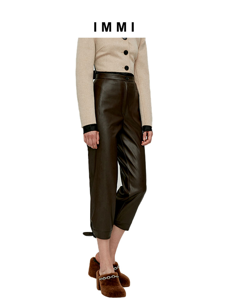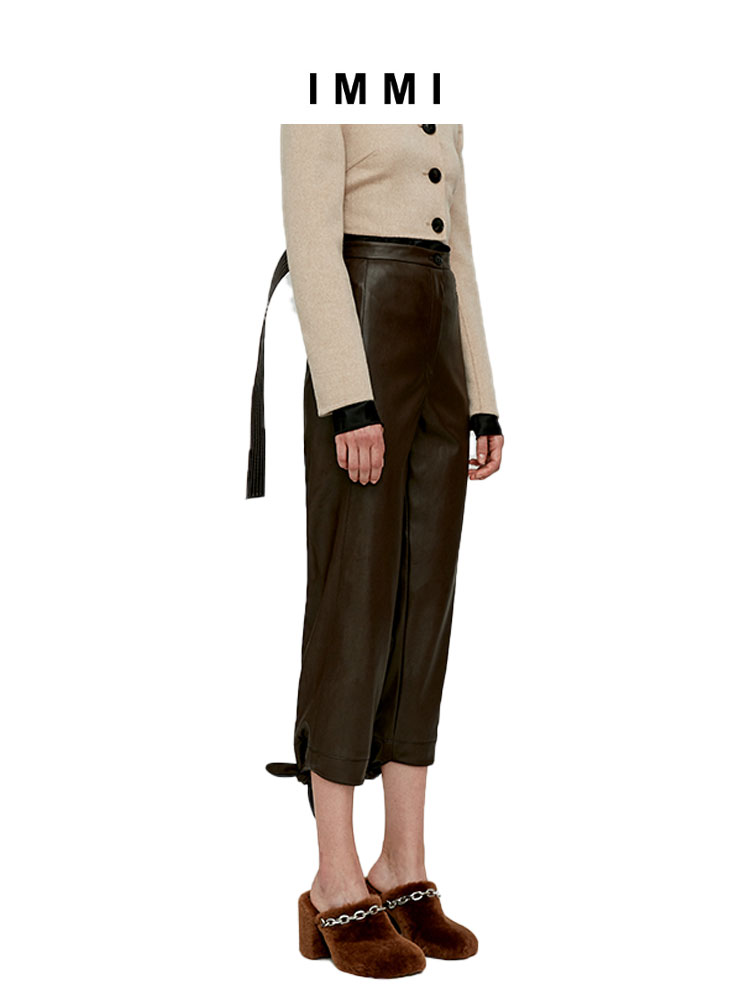 (Designer brand IMMI) PU knotted high waist cropped trousers 192PT017X