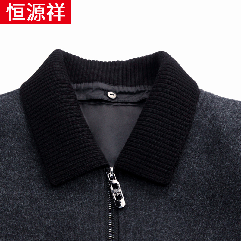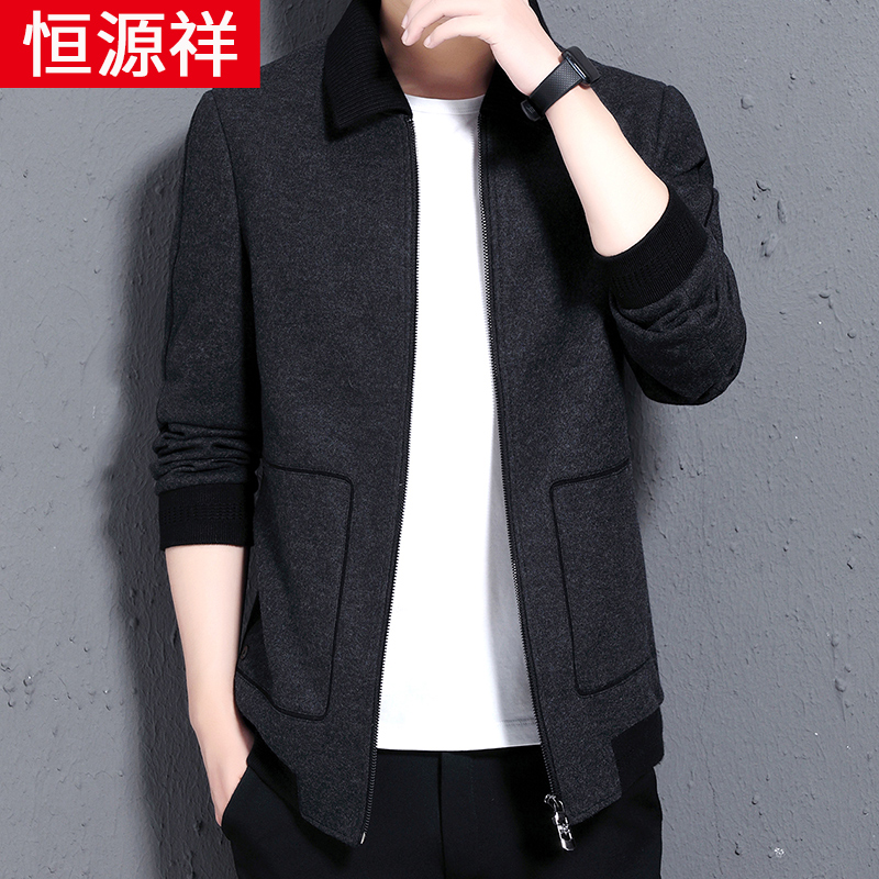 Hengyuan Xiang Men's Mao jacket Han version Trend Tide Turned Over Winter Clothing Jacket Middle-aged Men's Wool, Casual Blouse