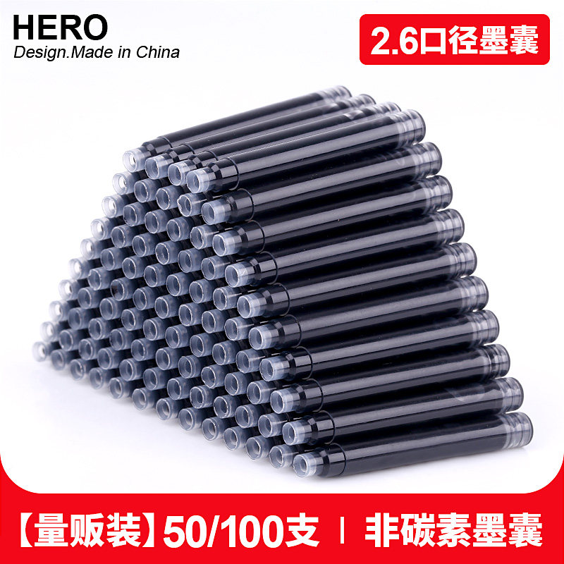 100 50 ink cartridge Hero Pen ink cartridge replaceable black blue black blue Black universal ink cartridge Disposable pen cartridge Ink cartridge 2 6mm small diameter 2017 pen suitable