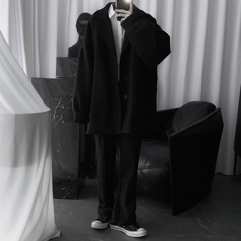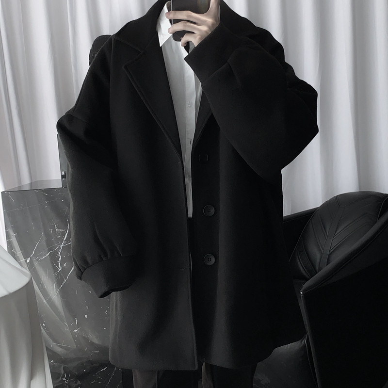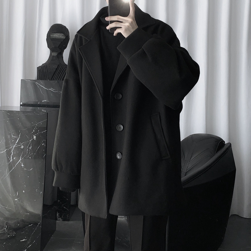 Mr short sentence homemade dark coat men's medium-long padded thickened winter Korean version loose wool coat