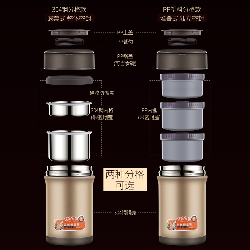 304 stainless steel insulation bucket lunch box Portable soup student lunch box set Office worker household partition type 1 person