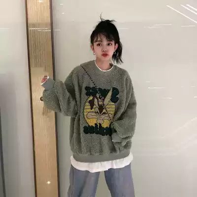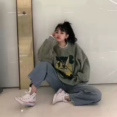 Harajuku wind jacket female ins super fire top Korean version of the tide long-sleeved bf lazy wind Hong Kong style chic loose sweater winter