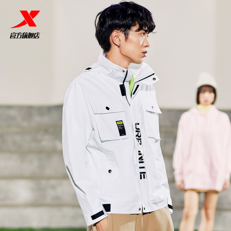 Xtep jacket men's hooded trench coat sportswear spring and autumn new loose top multi-pocket cargo jacket menswear