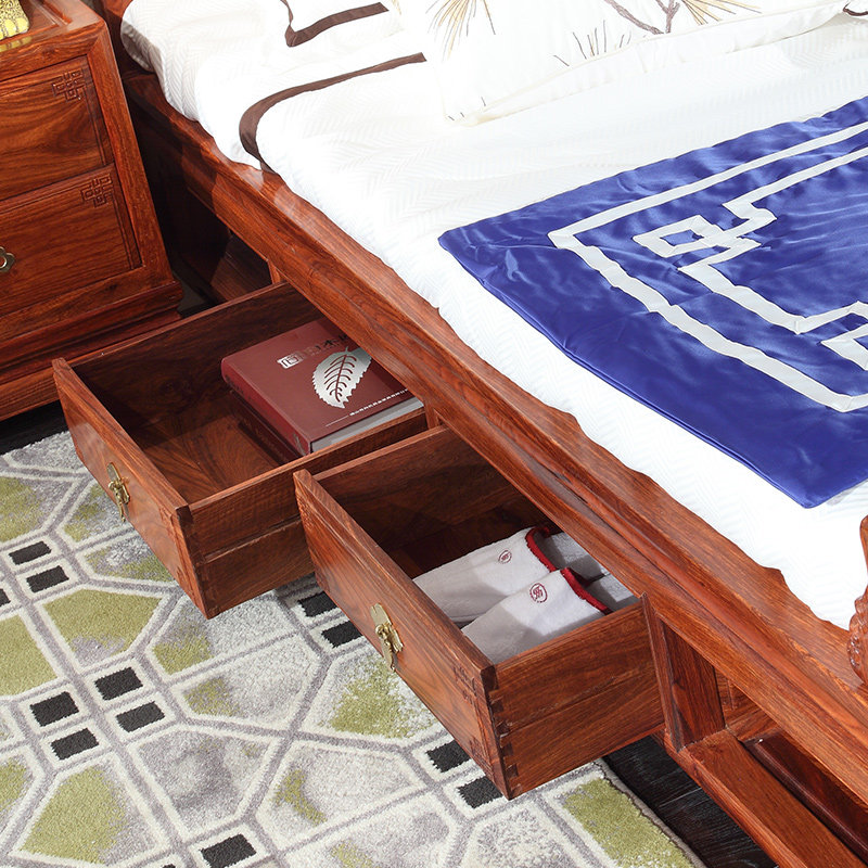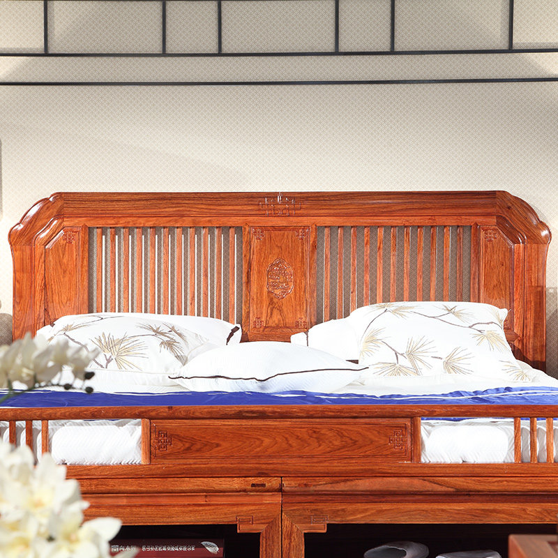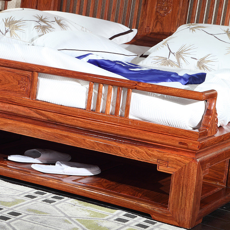 All solid wood bed 1.8 meters bedroom thick double bed mahogany furniture new Chinese style modern minimalist 1.5 meters master bedroom marriage bed