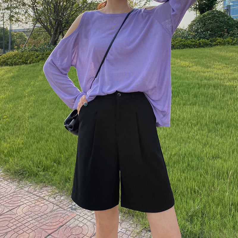 Five-point suit shorts Women's summer wear loose thin section high-waisted half pants Hanging thin wide legs straight Hong Kong-style five-point pants
