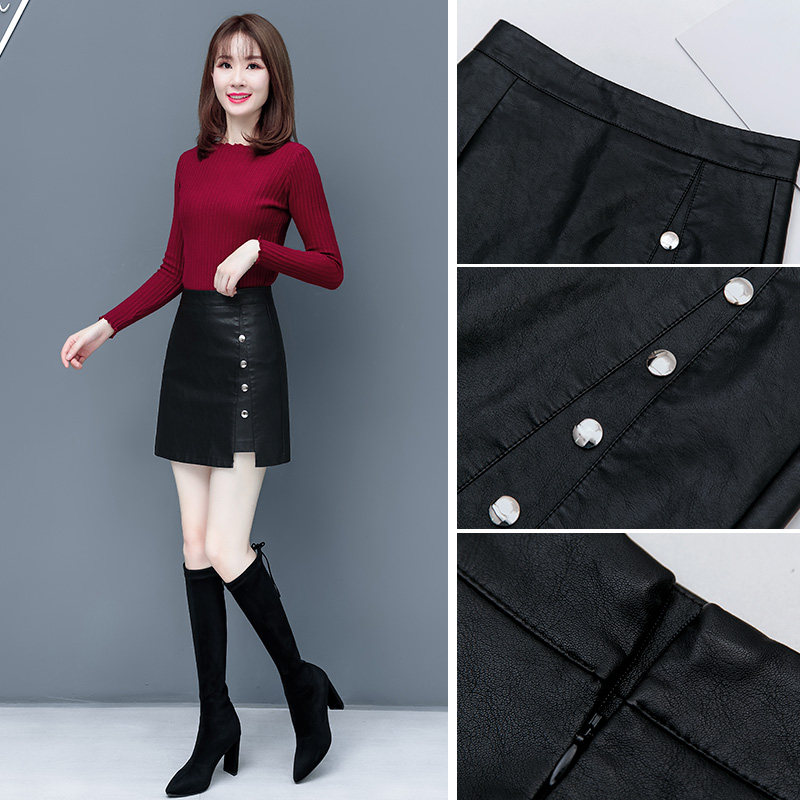 pu small leather skirt half body dress autumn winter women 2021 new high waist display slim fit hip a word 100 lap step short skirt