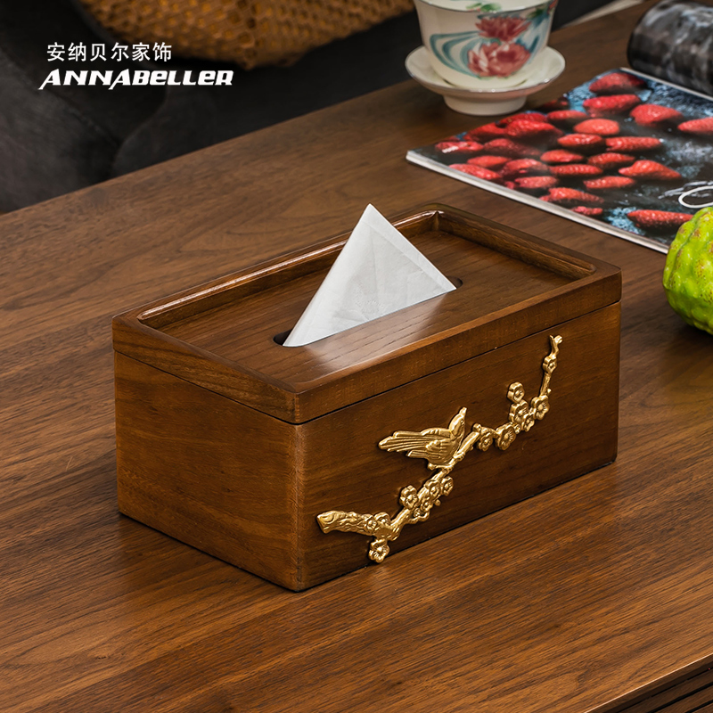 Solid wood tissue box Household American living room coffee table New Chinese removable toilet paper box Lunch hall decoration Wooden desktop toilet paper box