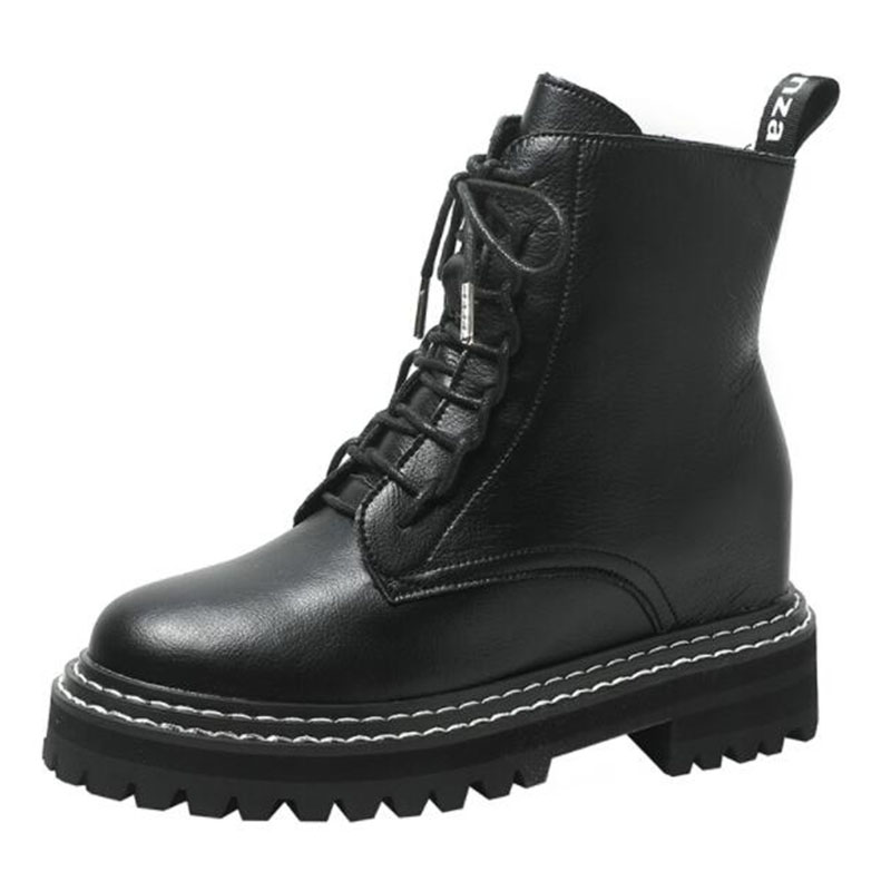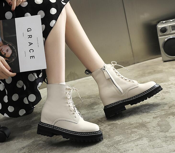 Hong Kong leather thick-soled inner height-increasing Martin boots women's 2020 new autumn and winter British style net red handsome booties women's tide